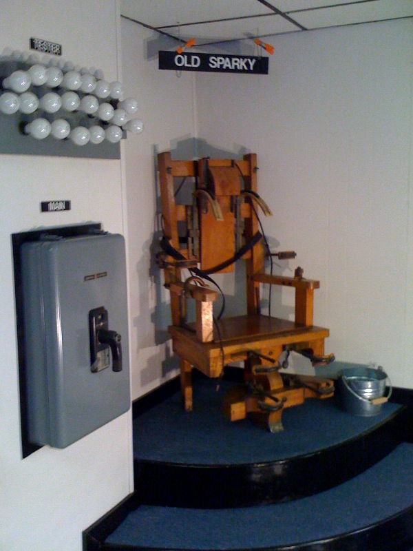 And, of course, Old Sparky. This is the original electric chair of the WV State Pen. I don't even want to know what the bucket of water is for.A couple of interesting stories from the Harry Powers experience: